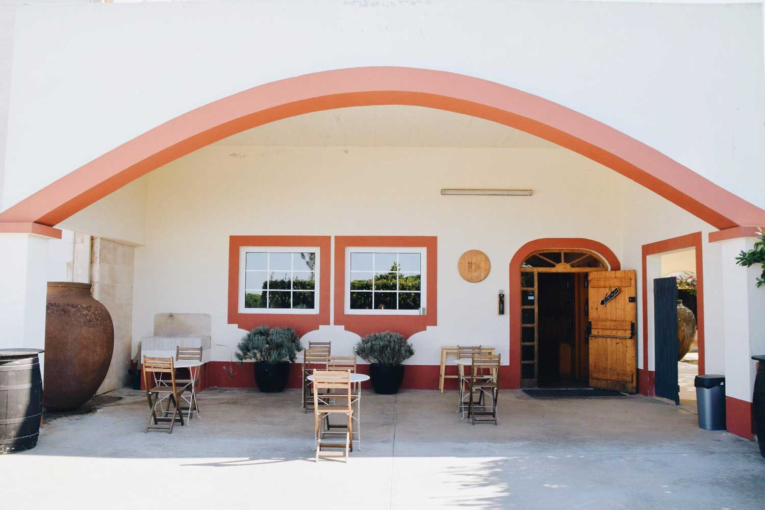 Implantada no sopé da Serra da Arrábida, surpreendemos-nos com o rigor das vinhas que rodeiam a moderna adega, assim como seus belíssimos pátios e jardins que envolvem o espaço dedicado a festas e eventos.